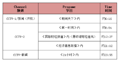 该视频于68日(星期五)、69日(星期六), 在CCTV-1、CCTV-2、CCTV-新闻等频道重点播出,敬请留意观看!